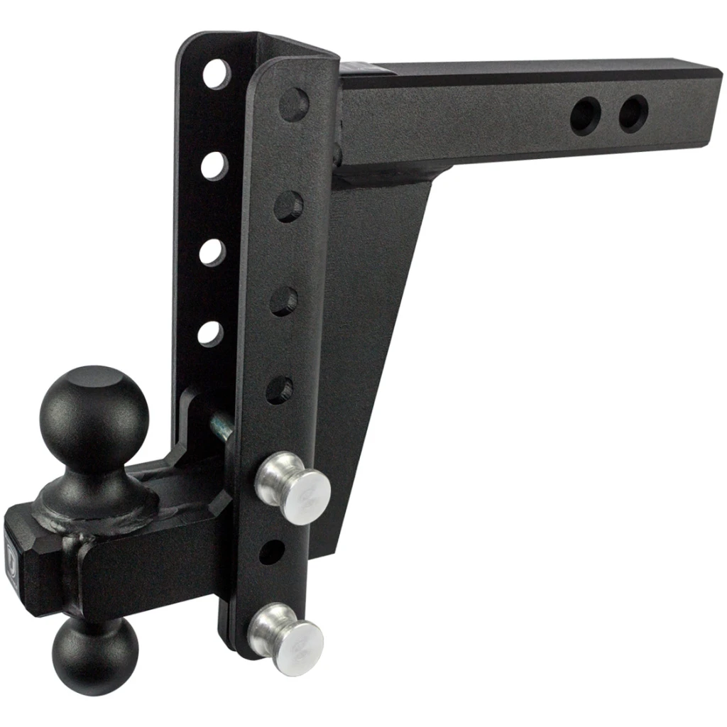 Bulletproof Hitches Heavy Duty 8” Drop hitch is a Class 4 hitch with a 22,000lb max towing capacity and 3,000lb tongue weight capacity. It features a solid steel shank with CNC chamfered edges making it easy to remove and install the hitch in any 2” receiver. This heavy-duty hitch comes standard with our solid steel 2” & 2-5/16” dual ball and a 1/2-inch-thick full-length gusset plate for reinforcement. It offers 5 easily adjustable ride heights, allowing you to tow many different trailers of different heights. This hitch is a great fit for trucks with a receiver height of 22” – 24” (level ground to the bottom of the receiver tube opening). Bulletproof Hitches are the strongest adjustable hitch on the market and the last hitch you will ever need!