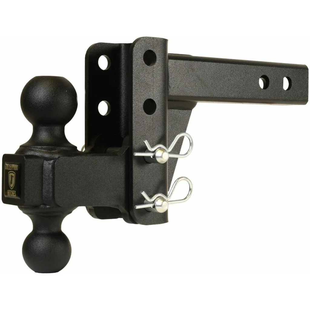 Bulletproof Hitches Medium Duty 2” Drop hitch is a Class 4 hitch with a 14,000lb max towing capacity and 2,000lb tongue weight capacity. This hitch comes standard with our solid steel 2” & 2-5/16” dual ball and a 3/8-inch-thick full-length gusset plate for reinforcement. It offers 3 easily adjustable ride heights, allowing you to tow many different trailers of different heights. The Medium Duty 2” hitch is a great fit for your SUV or midsize pick-up truck with a receiver height of 13” – 15” (level ground to the bottom of the receiver tube opening). Bulletproof Hitches are the strongest adjustable hitch on the market and the last hitch you will ever need!
