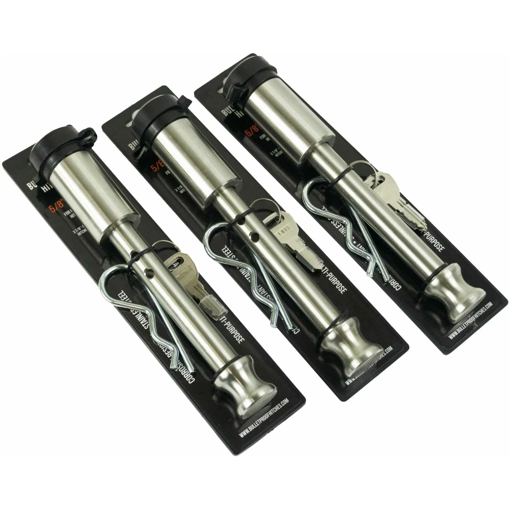 Our locking pin is made from stainless steel to provide maximum corrosion and rust protection. The length of the pin works with all 2”, 2.5” and 3” hitch receivers. It can also be used to secure the dual ball or other Bulletproof accessories into the hitch channel. It is compatible with any vehicle on the market.
