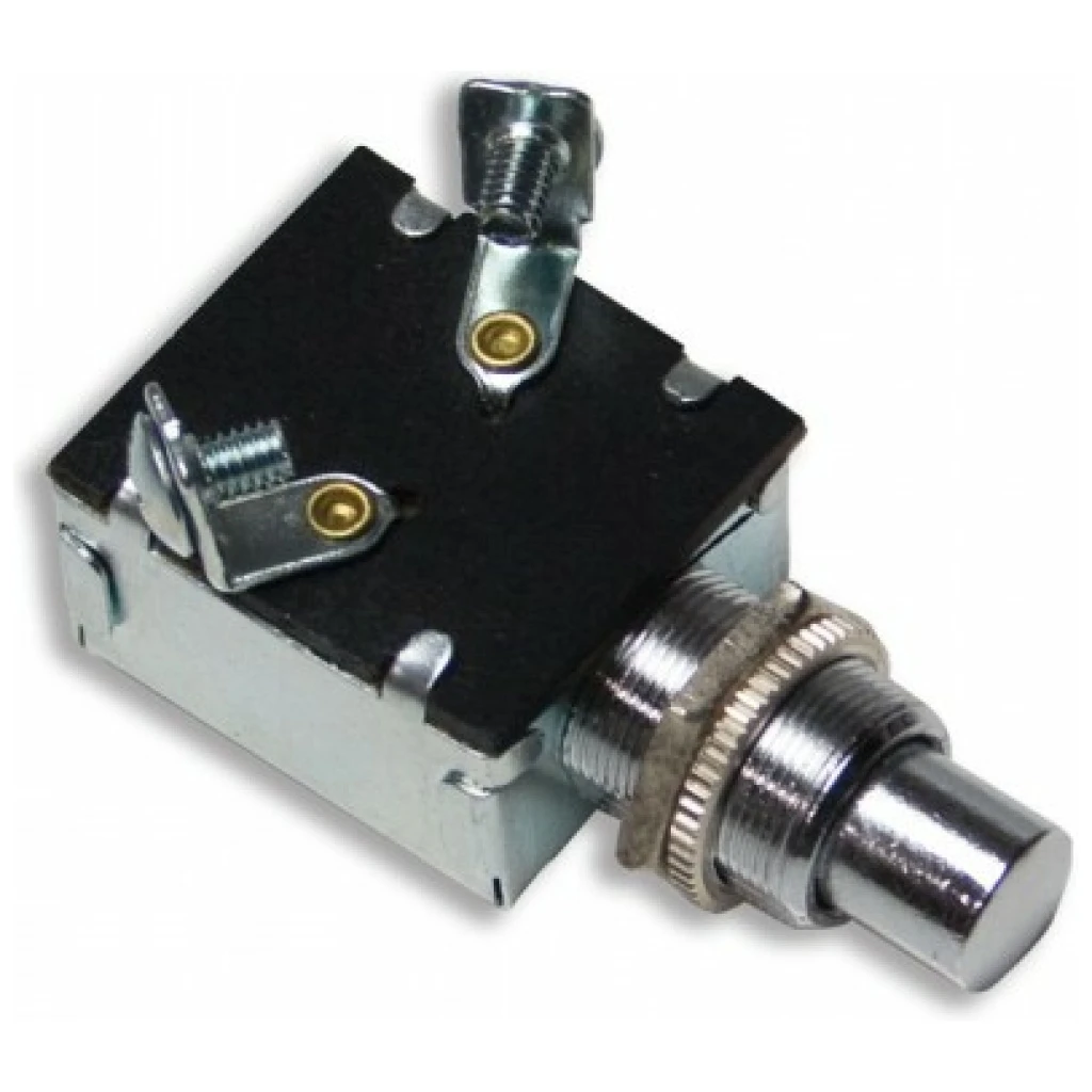 12V DC brass/chrome momentary switch.